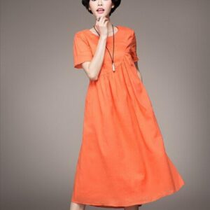 Angel&Lily A-line linen loose fit Casual day work long maxi dress plus1x-10x, height length base on the height 5’3″ – 5’6″ (160cm-170cm),contact us if needing special, in same Price we can do custom made. Also available in BLACK, contact us if you need this colour.