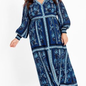 With an undeniably chic style, the Serene Placement Dress is bound to be a firm favorite. Featuring a relaxed fit, V-neckline and full length sleeves, this dress creates ensembles that will turn heads. Key Features Include: V-neckline br> Full length sleeve with shirred cuffs br> Complete with strappy sandals and gold accessories for a touch of glam br> Pull over style br> Relaxed fit br> Maxi length br> Body: 100% Polyester. Lining: 100% Polyester MACHINE WASH WARM, DO NOT BLEACH, LINE DRY, LIGHT IRON, DO NOT DRY CLEANImported
