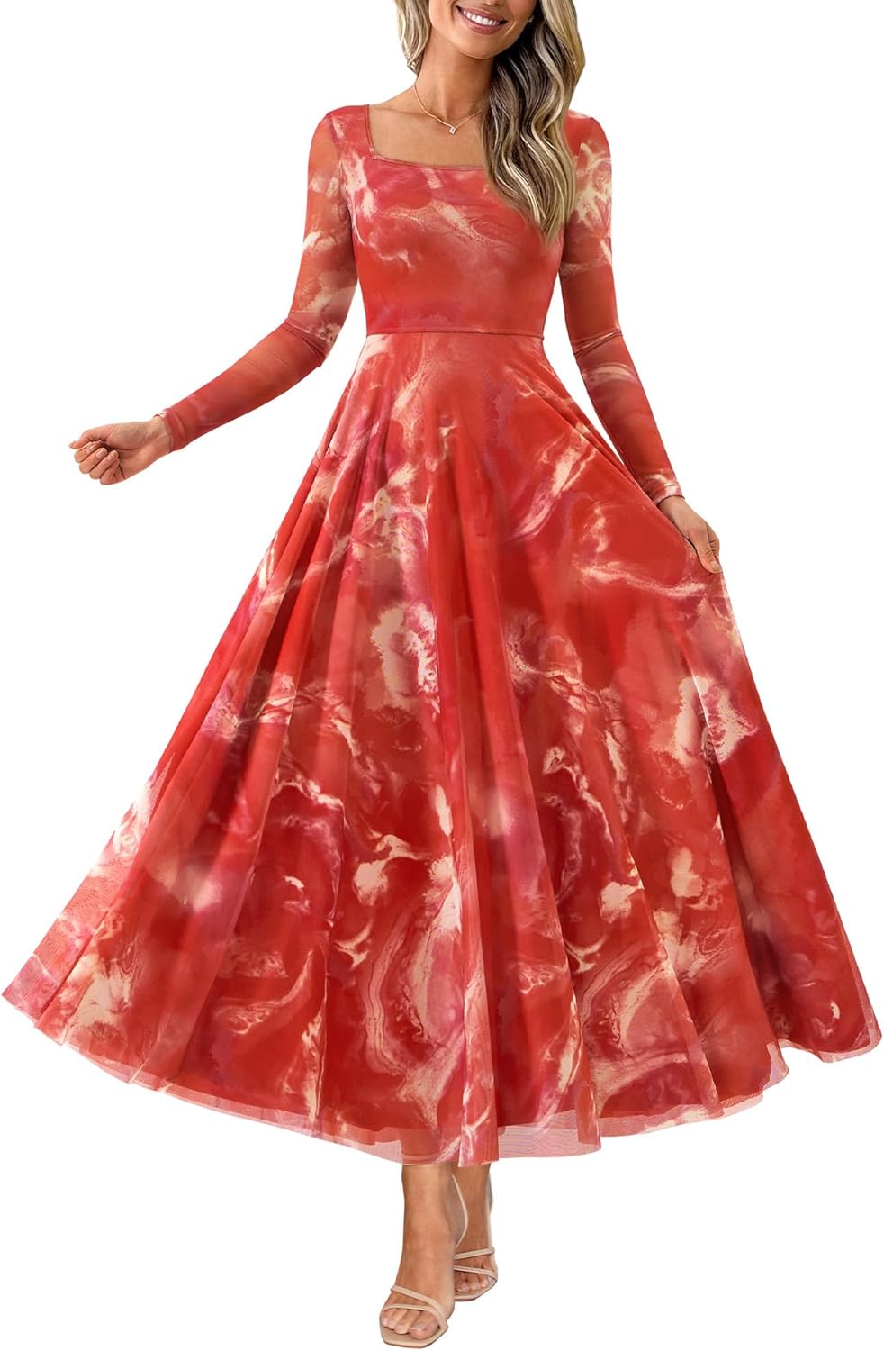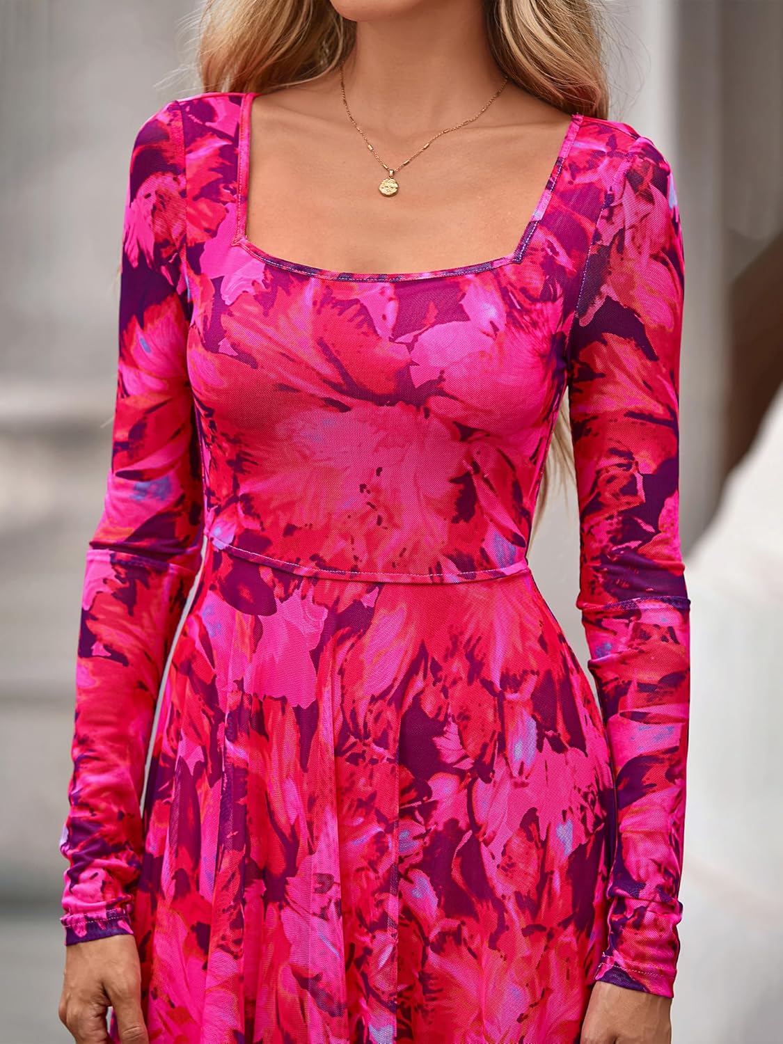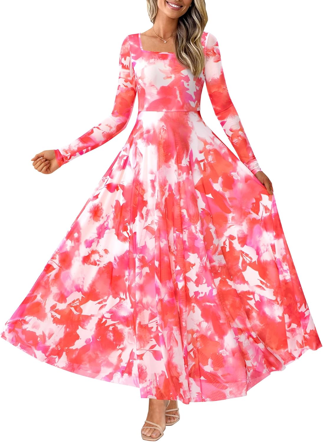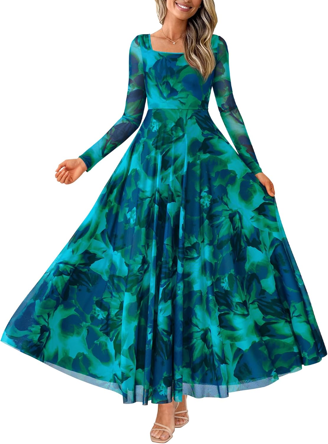 BTFBM Women Maxi Dress Fall 2025 Fashion Elegant Long Sleeve Square Neck Floral Print Party Club Wedding Guest Dresses
