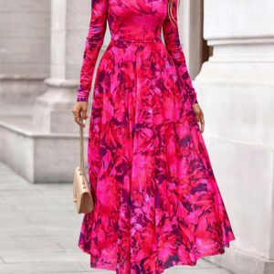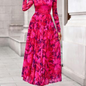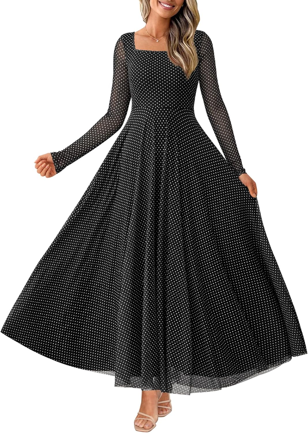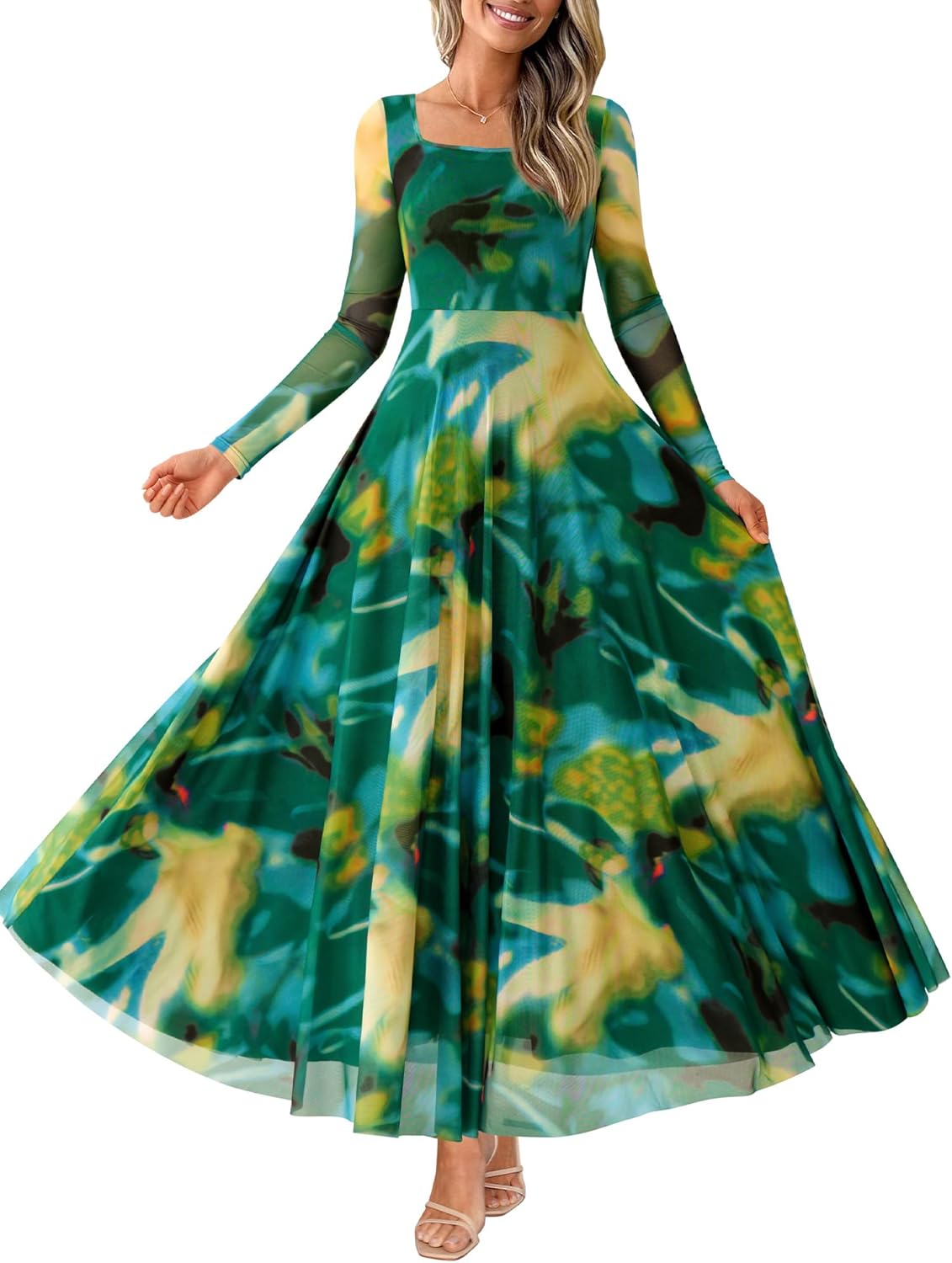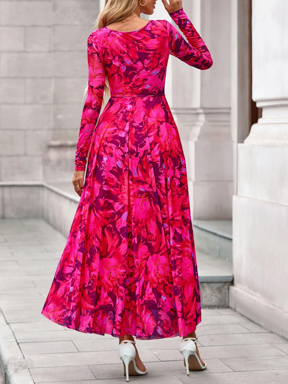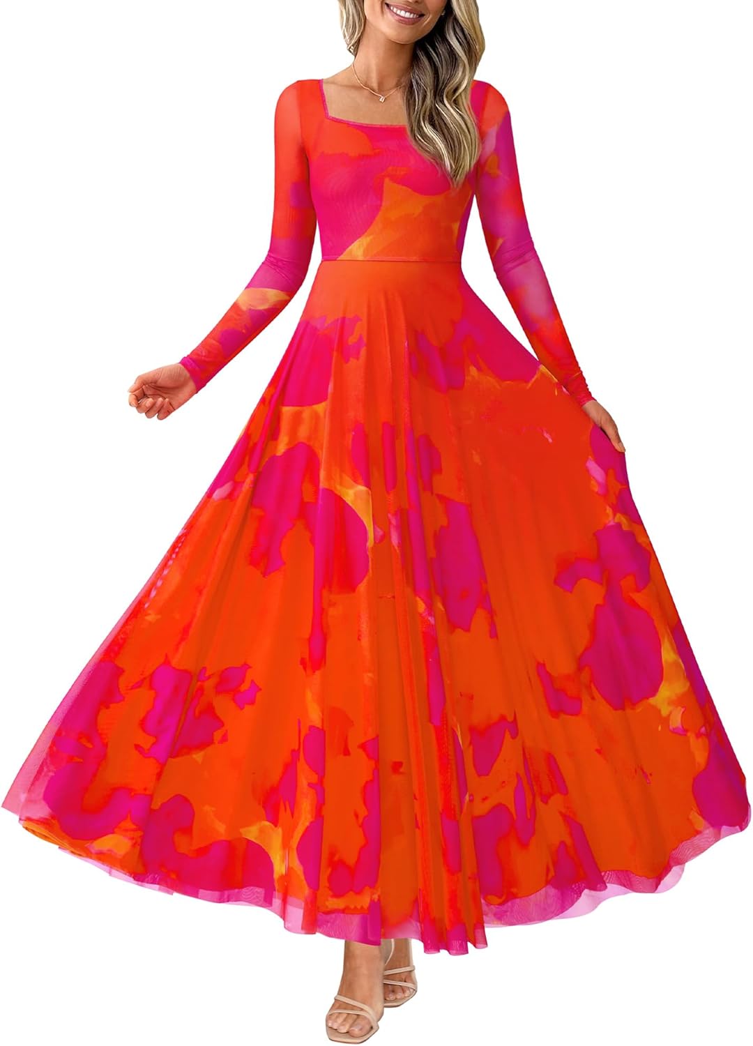 BTFBM Women Maxi Dress Fall 2025 Fashion Elegant Long Sleeve Square Neck Floral Print Party Club Wedding Guest Dresses