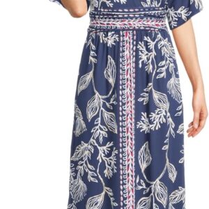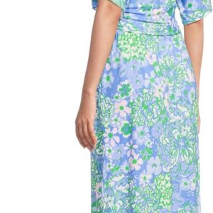 43″ Straight fit, flats length, boatneck maxi dress with back surplice, elbow length kimono sleeves, ruched waistband, and side slit
