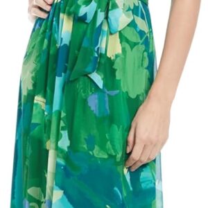 A stunning maxi dress featuring a distinctive halter neckline with crossed fabric detail, empire waistline with elegant gathering, A-line silhouette constructed from lightweight chiffon, and semi-sheer overlay creating graceful movement through the dress