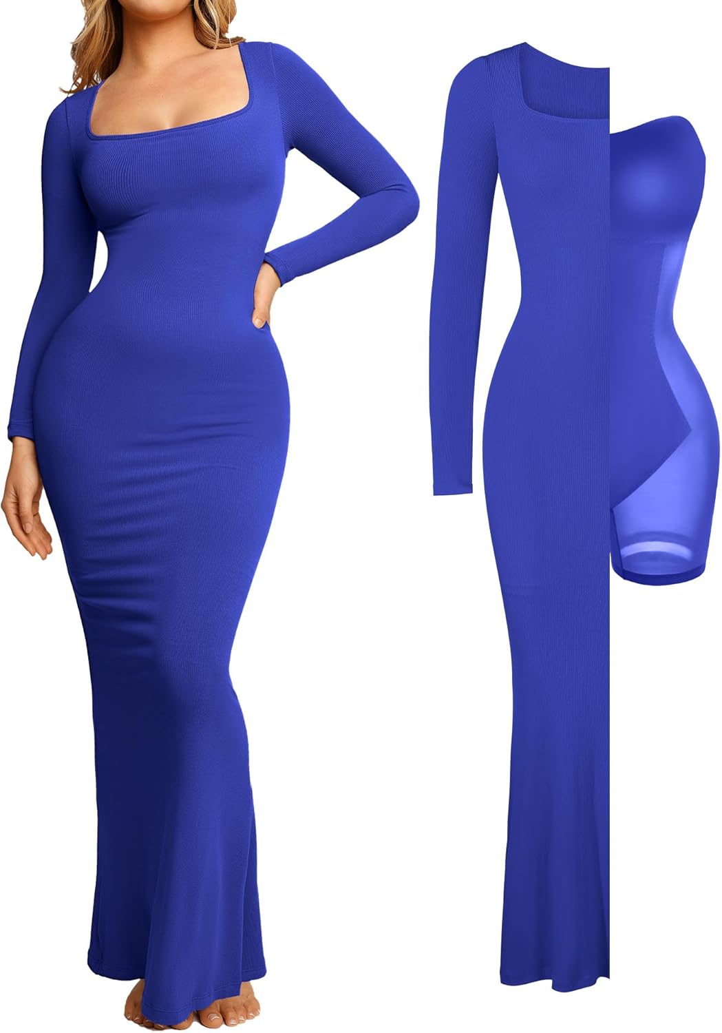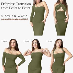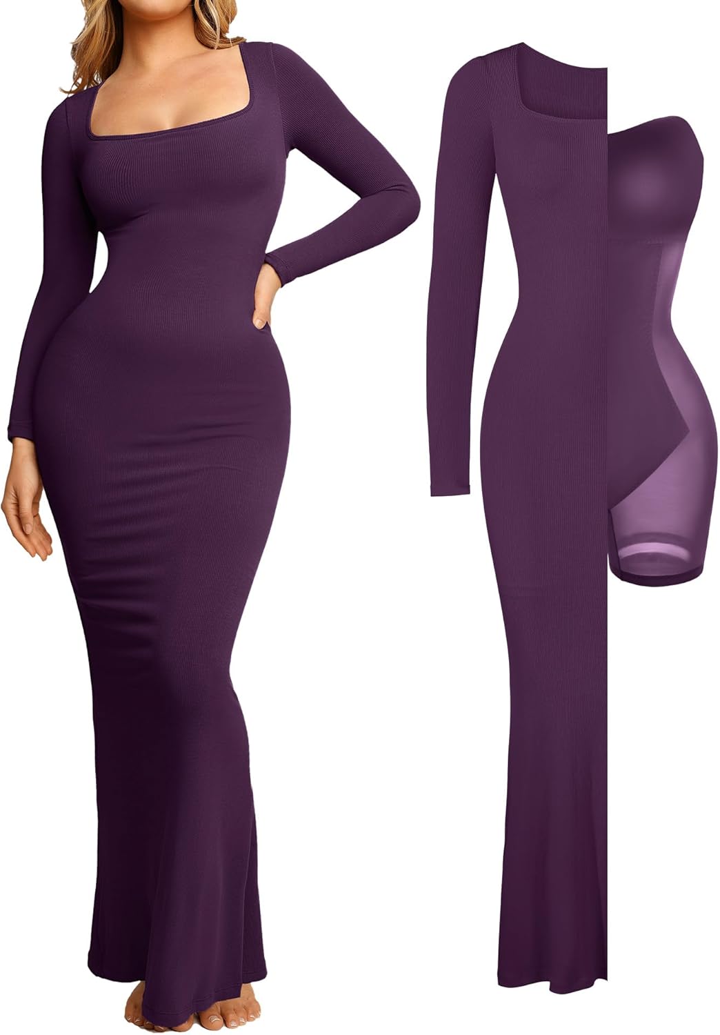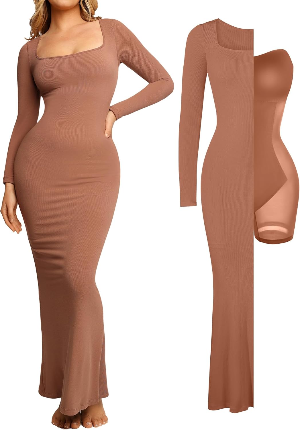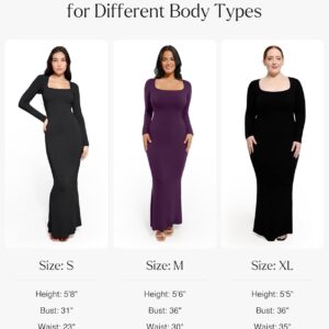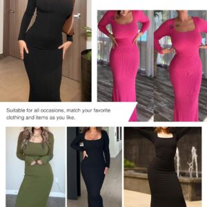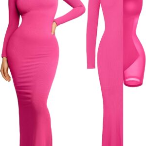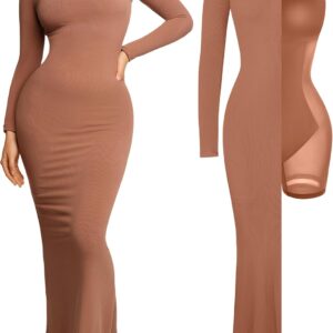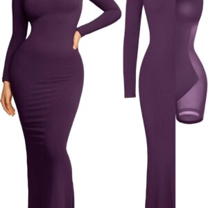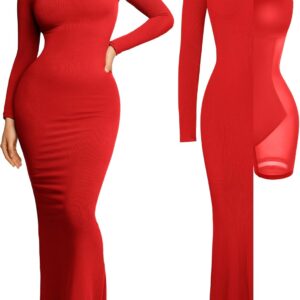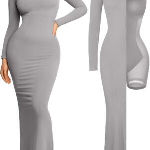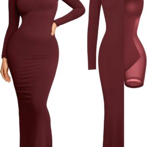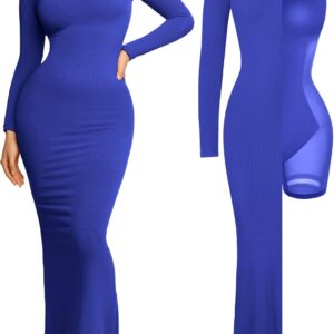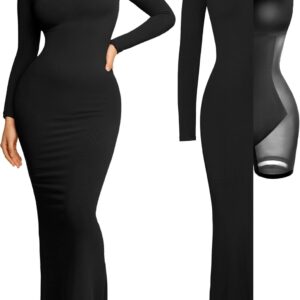 Popilush Long Sleeve Maxi Dress Fall Formal Cocktail Dresses for Women Shapewear Tummy Control Bodycon Dress Built-in Bra