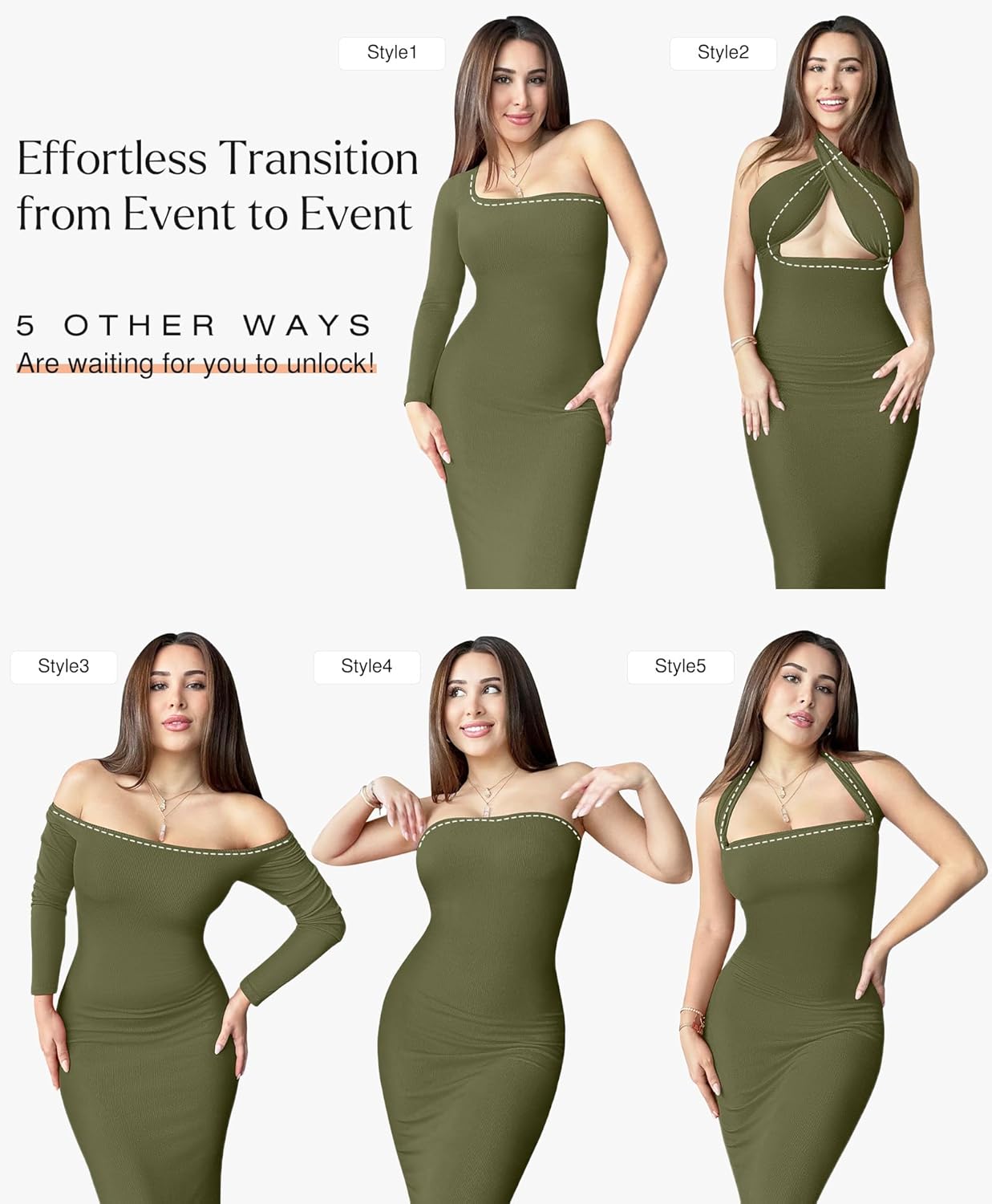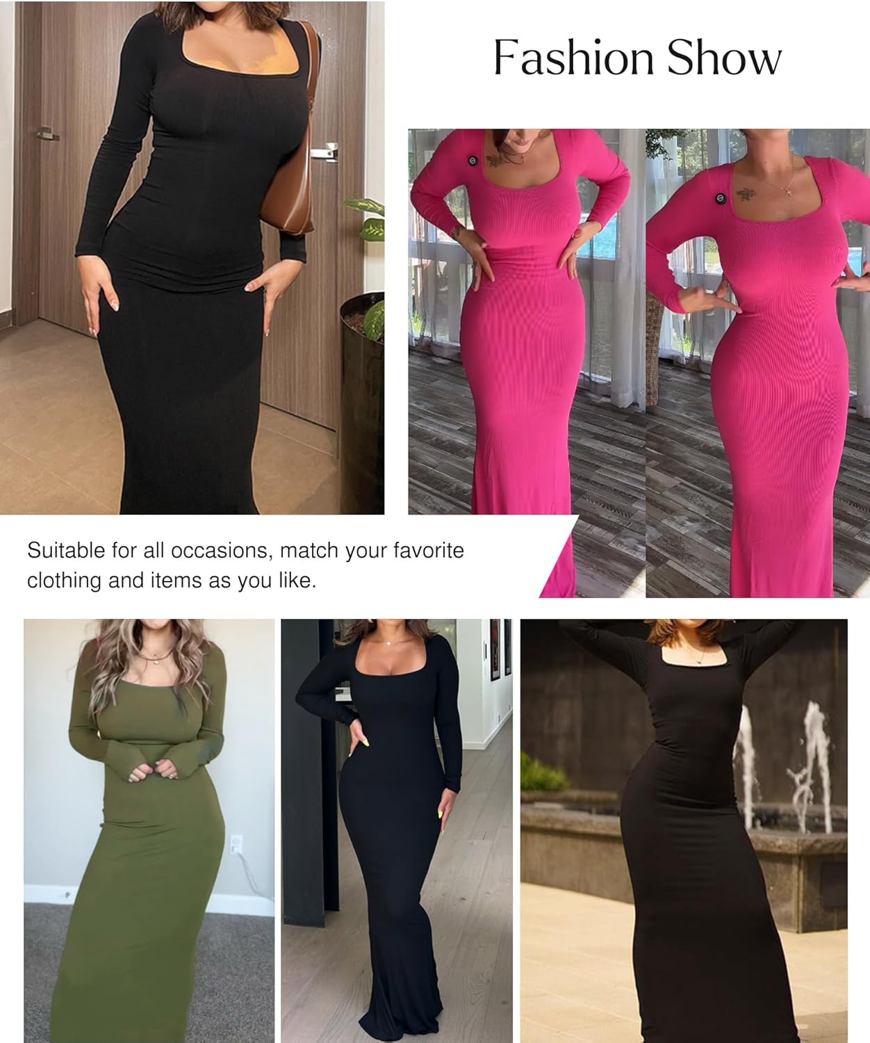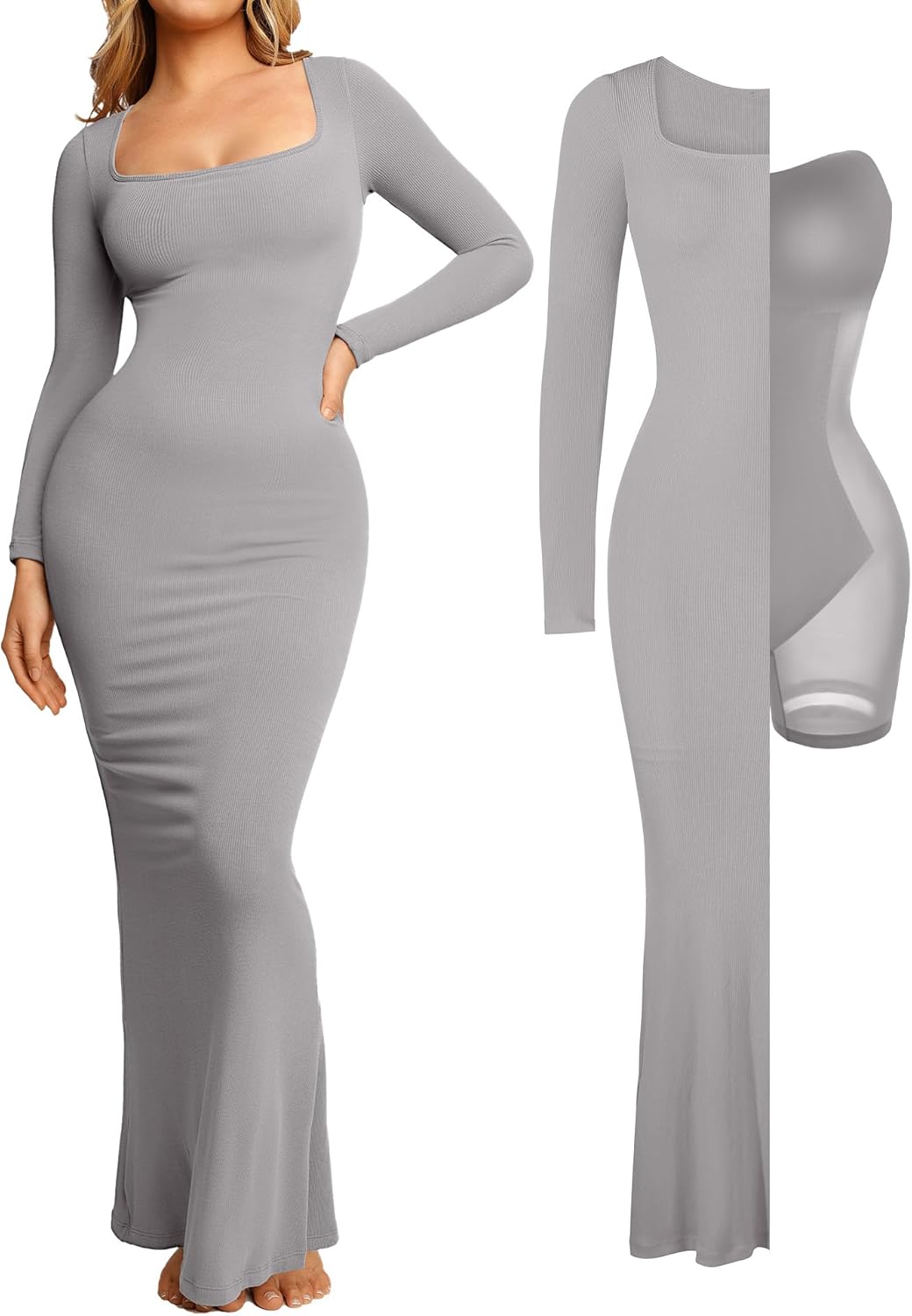 Popilush Long Sleeve Maxi Dress Fall Formal Cocktail Dresses for Women Shapewear Tummy Control Bodycon Dress Built-in Bra