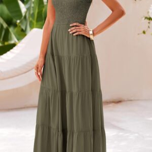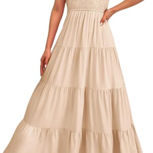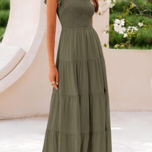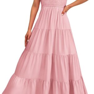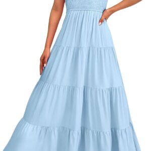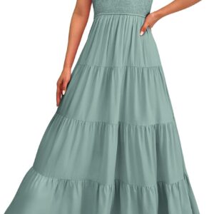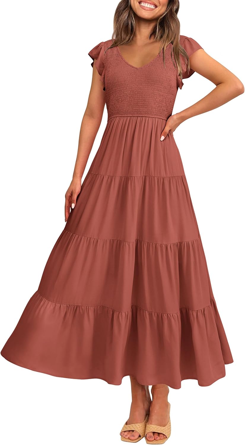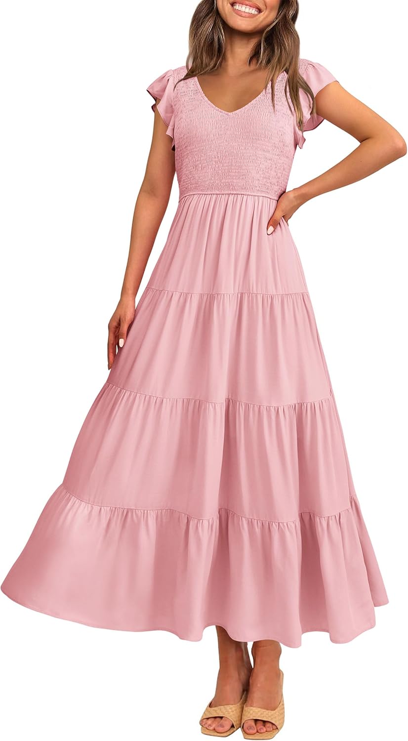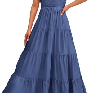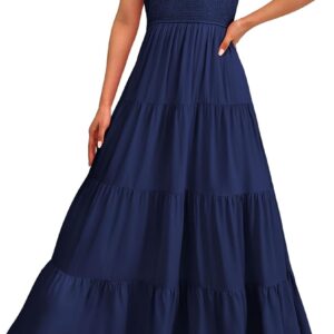PRETTYGARDEN Women’s Summer Flowy Maxi Dress Casual Cap Sleeve V Neck Smocked Beach Sundress