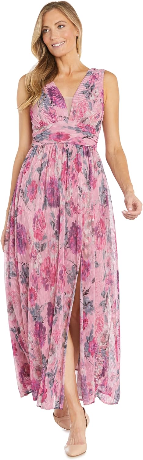 Embrace effortless beauty with this floral maxi dress- a graceful combination of soft romance and refined detailing. This long crinkle pleated floral dress flows with every step, designed to flatter with its airy, silhouette and flattering illusion v-neckline.